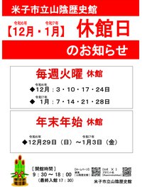 令和6年12月・令和7年1月(年末年始) 休館日のお知らせ