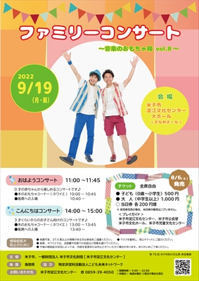 詳しくは 「ファミリーコンサート~音楽のおもちゃ箱vol.8~」出演者変更のお知らせ ページをご覧ください。