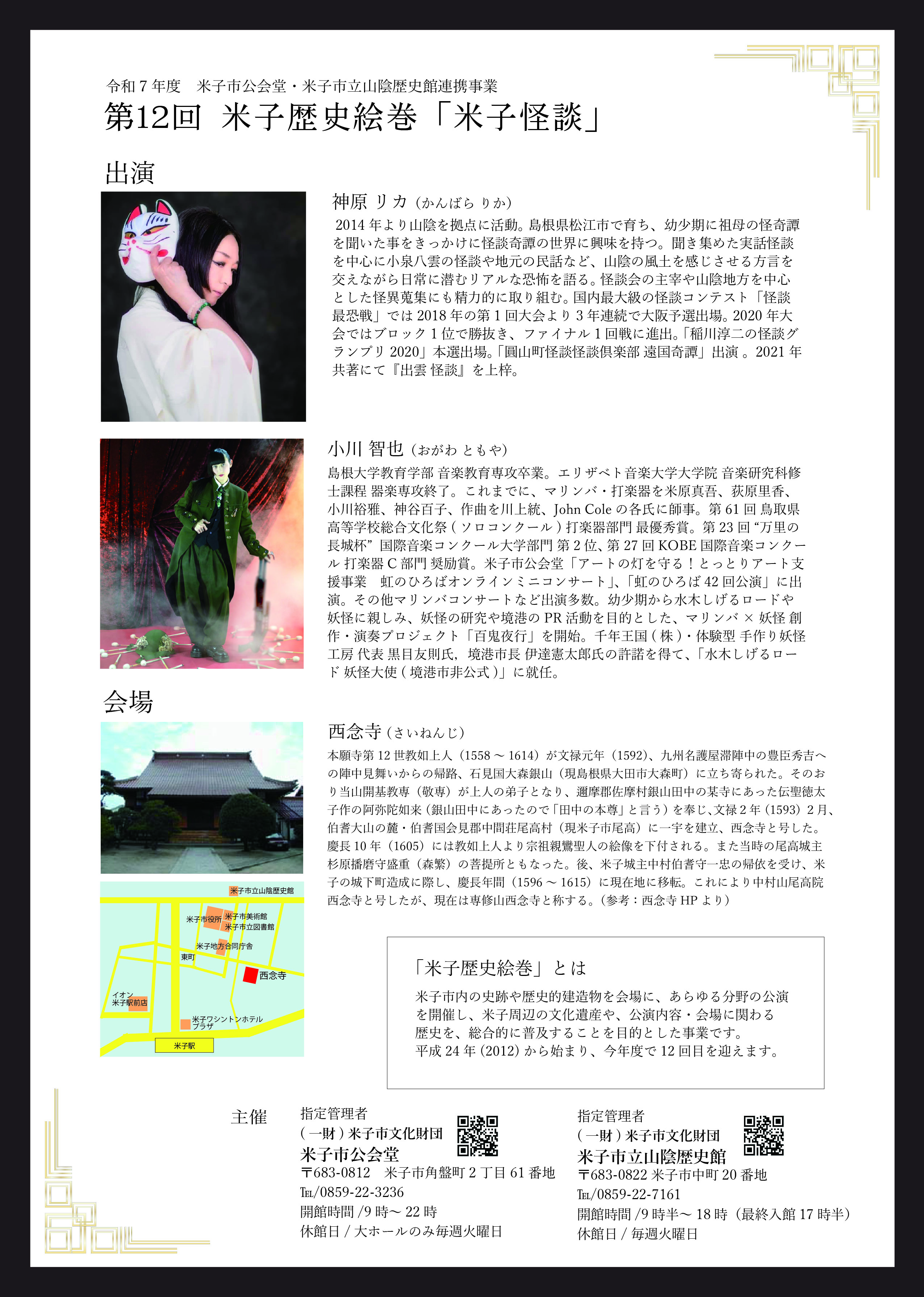 | 主催 | 米子市、米子市教育委員会、(一財)米子市文化財団[米子市公会堂・米子市立山陰歴史館] |